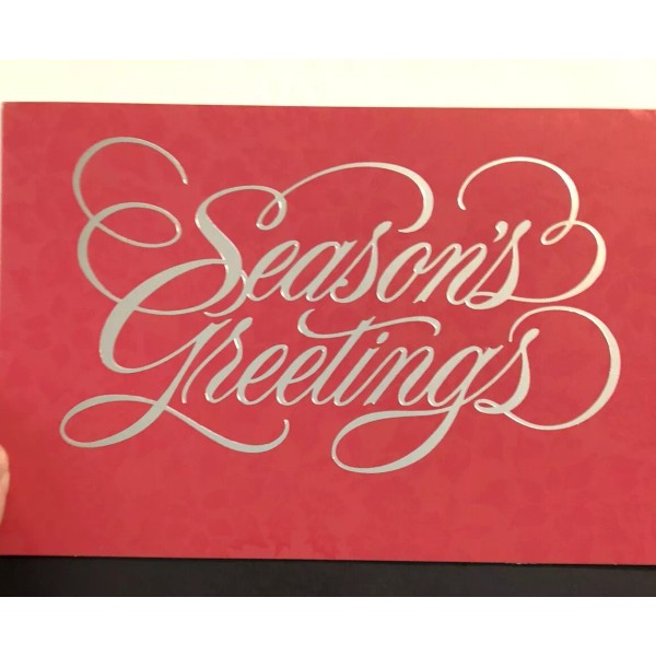 Vtg Christmas Card Pretty Red Card Silver Script “Season’s Greetings” Poinsettia ~ American Greetings Card