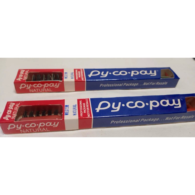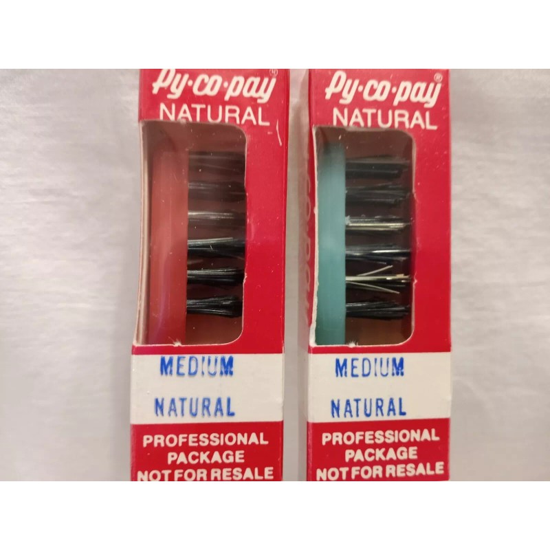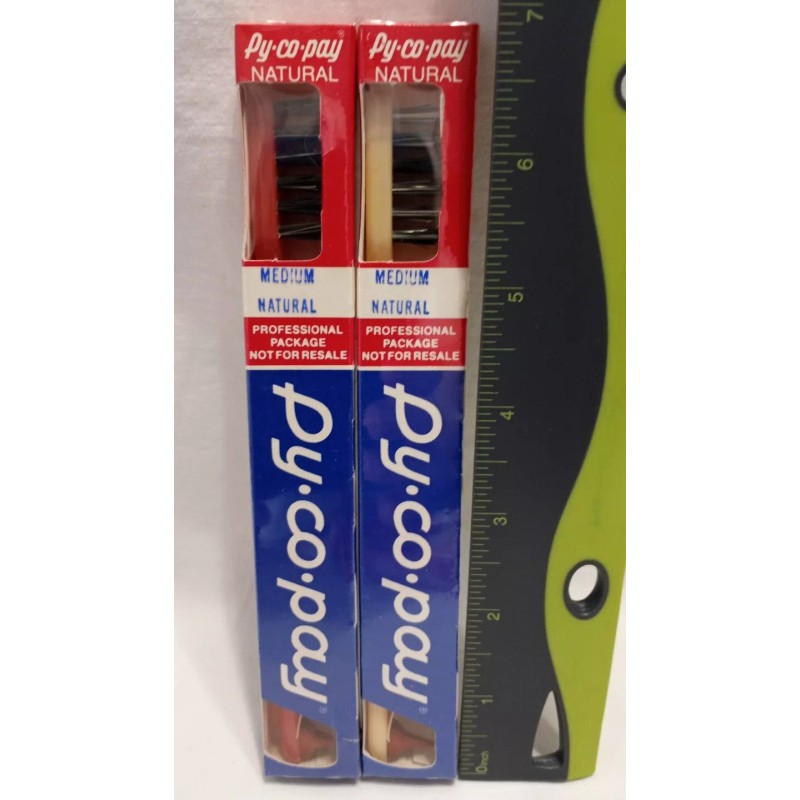Vtg Py-co-pay Natural Toothbrushes Lot Of 2 Medium Natural Bristles Rubber Stimulator tip. Professional package. Colors vary. Toothbrush is 6.5 inches in length. MPN 1675 ss1