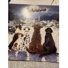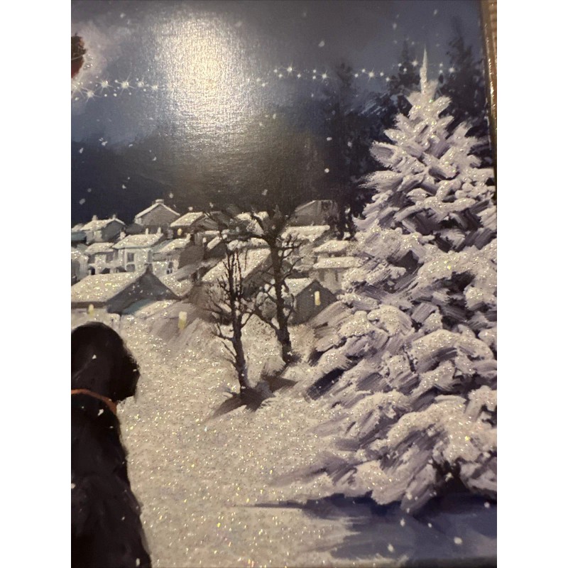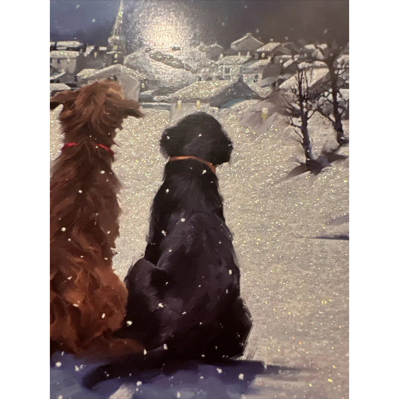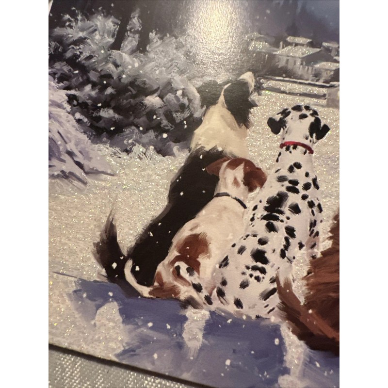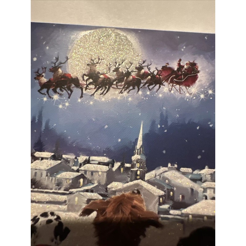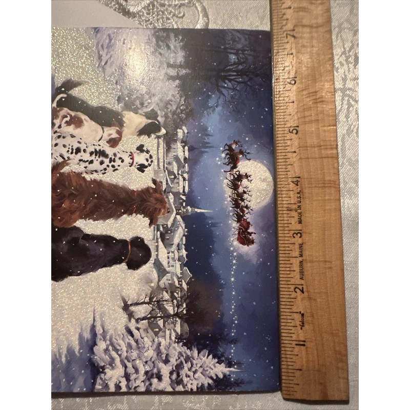 Vtg Unused Christmas Card Heavy Glitter Dogs Santa Moon Aussie Dalmatian W/Env
