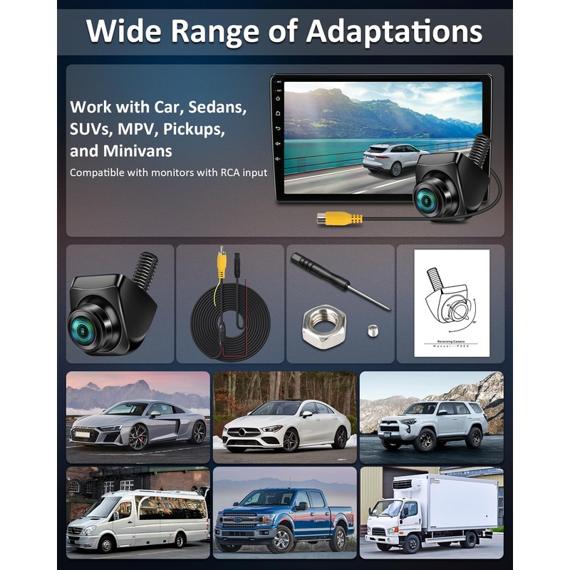 Vtopek P069 reverse camera always suitable for your Dual DIN Stereo Radio Mainframes, OEM Navigations, Android DVD Players, TFT/LCD monitors and more. If you don't know what video format your radio supports, just hold the button until the screen is displayed after installing the reversing camera for car!