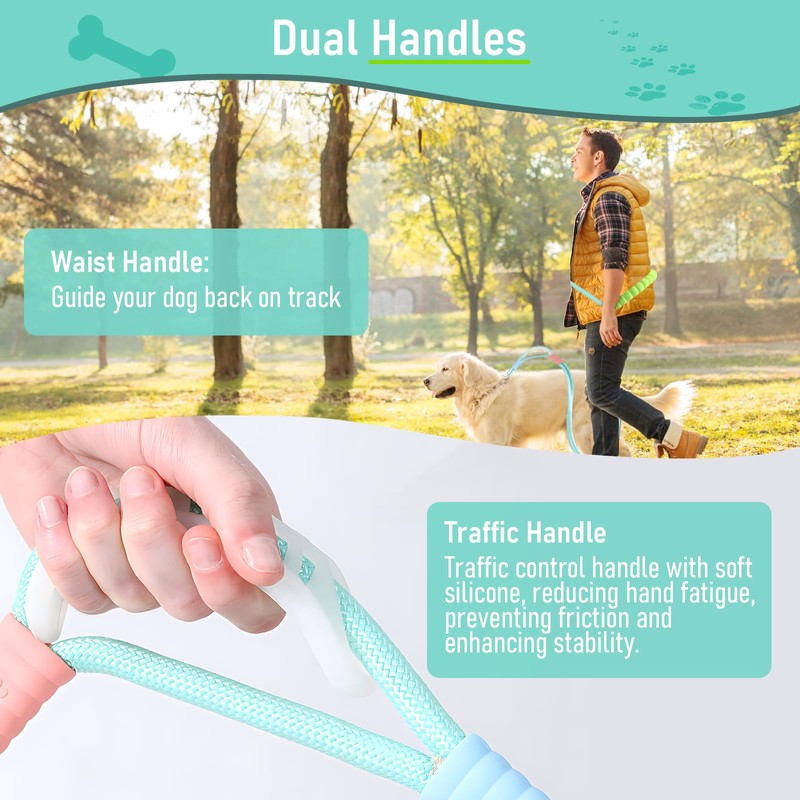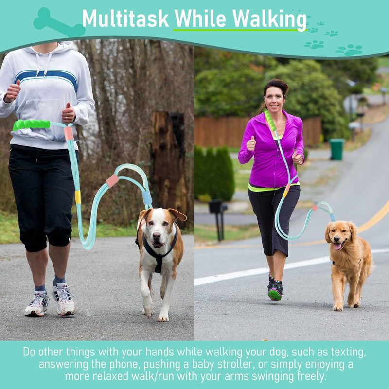 VTOPVMAX Hands Free Dog Leash, Adjustable Waist Leash Dog Walking, Crossbody Rope with Explosion-Proof Handle, Double Dog Rope Leash, Waist Leash for Dog Walking (Mint Green)