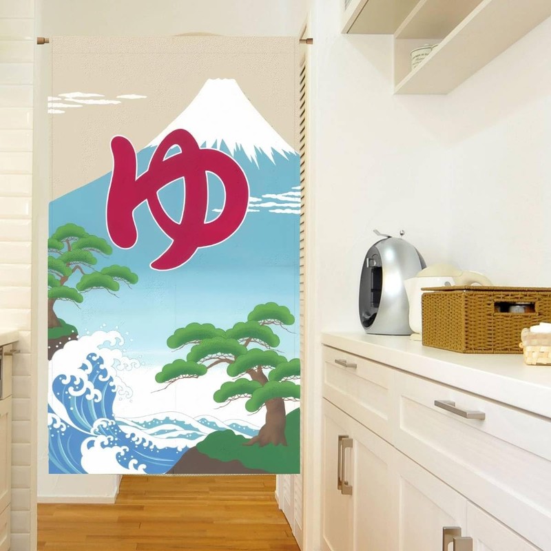 Vtrbwze Noren Japanese Yu Bath Doorway Curtain Asian Tapestry Decorations Room Divider Privacy Onsen Sento Furo Curtains Oriental Traditional Chinese (Yu Mount Fuji, 33.5" W x 67" L) NR1340