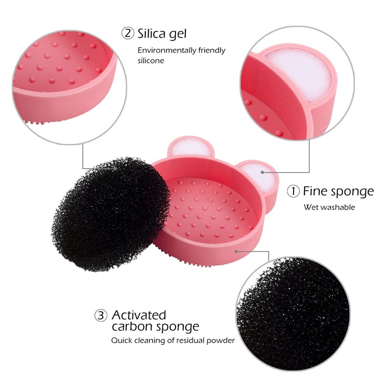 - 【UNIQUE DESIGN】2 in 1 silicone brush mat, Bear and Heart-shaped cleaning box, cute, portable, dry-wet dual-purpose, quick cleaning. It is resistant to rust and easy to clean and. Quick dry and hygienic, make your makeup more easier.