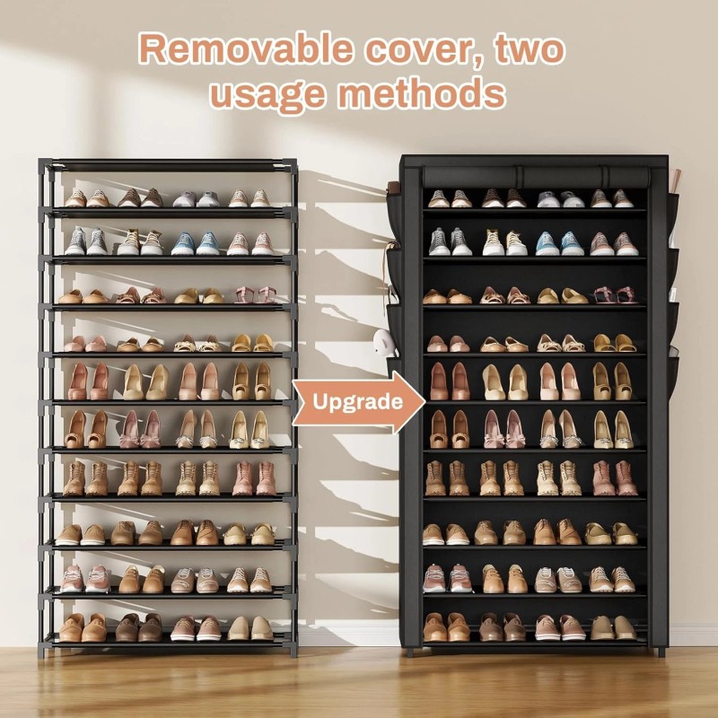 - Shoe Rack with Dustproof Cover: This tall shoe rack with cover and zipper design, you can zip it up, keep your shoes away from dust, and prevent pets from scratching your shoes. This closed shoe rack can better store your shoe and keep them clean and tidy