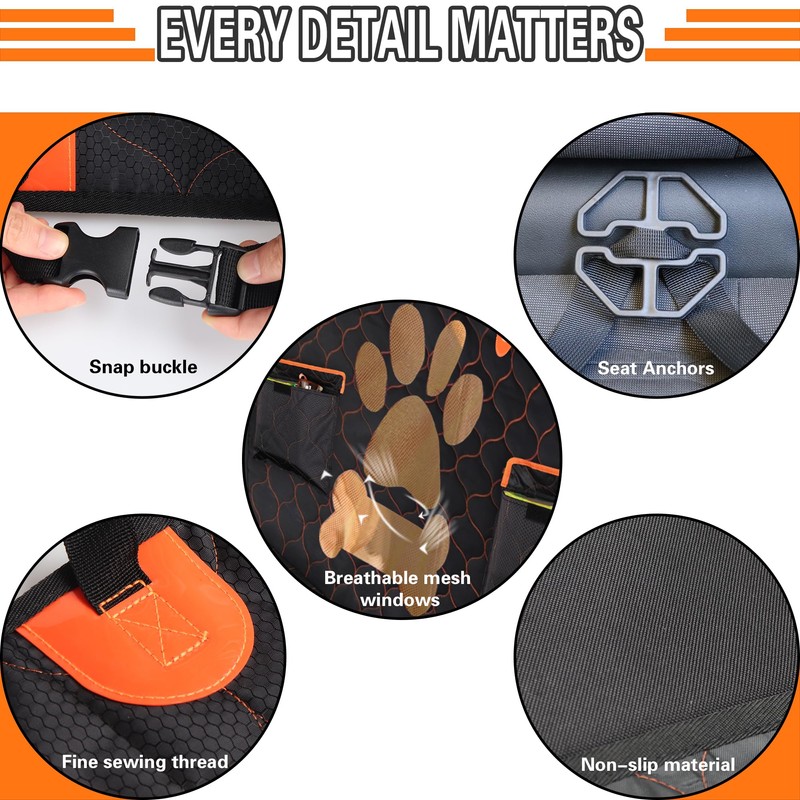 The waterproof, non-slip, and wear-resistant dog car seat cover provides added protection and easy cleaning, ensuring a clean and safe environment for your pet. With a stable non-inflatable car bed mattress and durable fabric construction, this back seat bed inflatable for car offers stability and longevity.