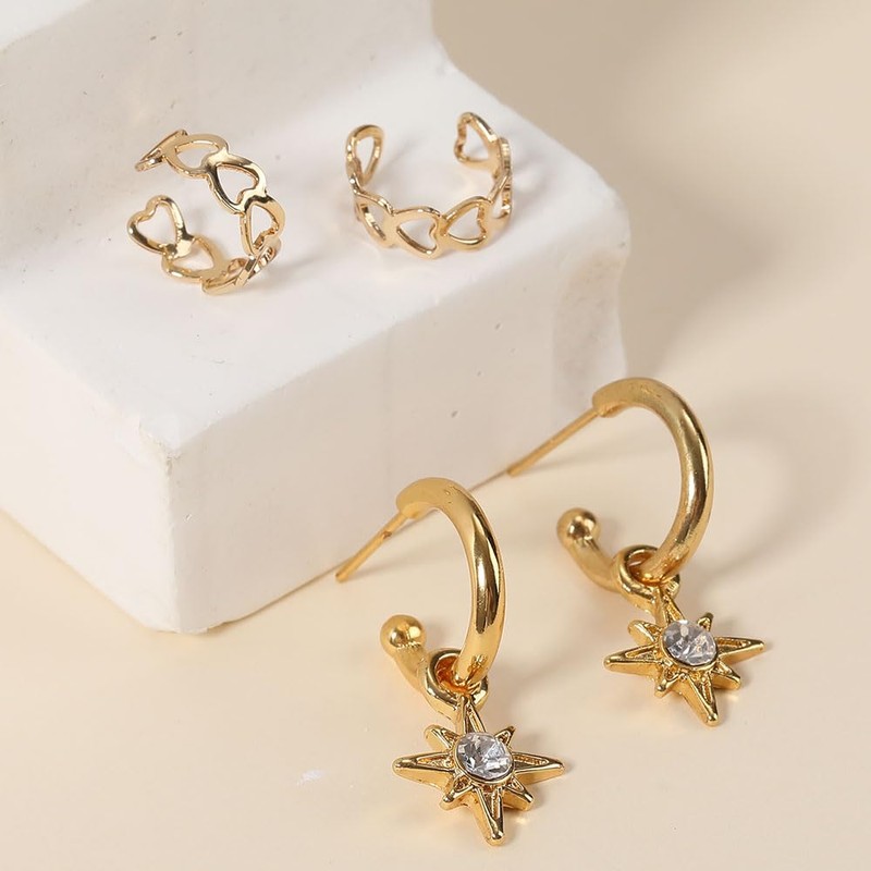 - GOLD HOOP EARRINGS SET:Star Gold Hoop Earrings paired with a Round Shape Ear Cuff Earrings ,Ball Earstud which can enrich your collocation, and meet your various occasions and wearing needs.