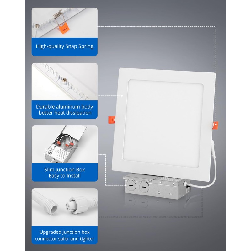 - 5 CCT Dimmable Square LED ceiling light: 5 color temperatures option Includes a color adjustable option, you can choose either 2700k, 3000K, 3500k, 4000K, 5000K, with a simple switch.