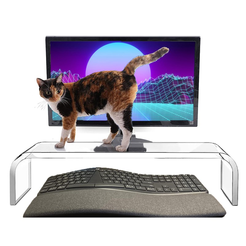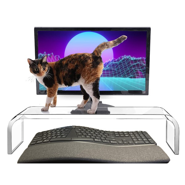 VTZEOTQ Acrylic Monitor Stand Riser Crystal Clear Monitor Riser, 21 inch large Anti Cat keyboard cover keyboard cat protector, Computer Stand Riser with Keyboard Storage and Laptop Desk Stand