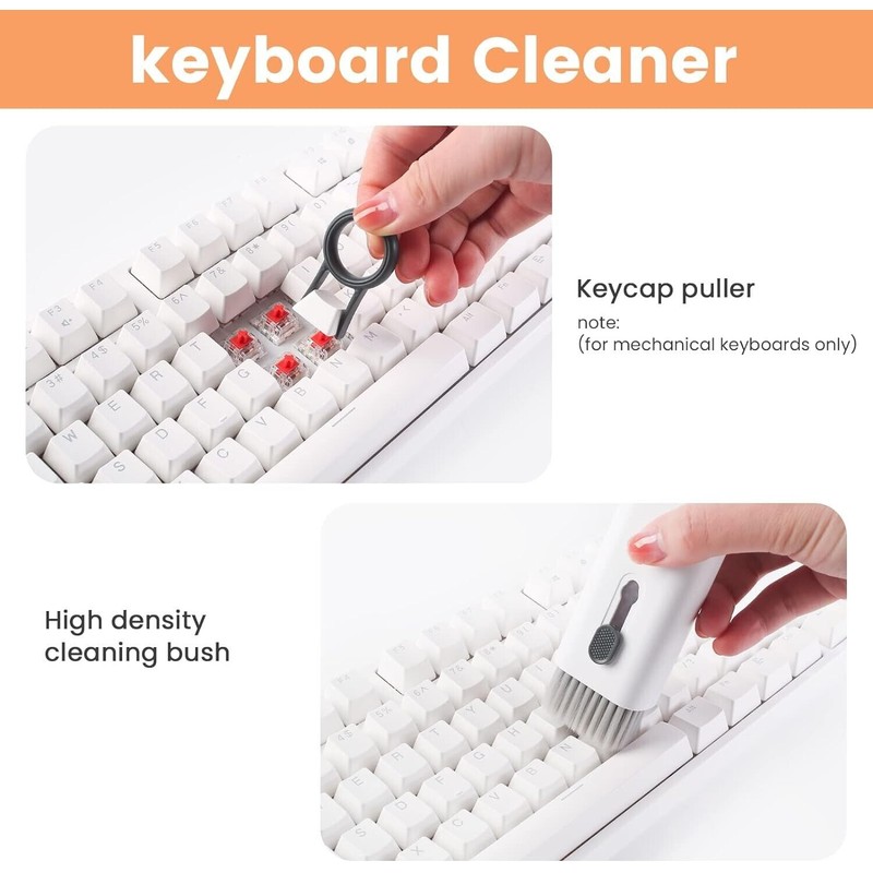 - Multipurpose Cleaner Kit: 7-in-1 Laptop Screen & Earbuds Cleaning Tool, Including Airpod Cleaning Pen with Silicone Clip, Flocking Sponge & Brush, Keyboard Clip, Screen Cleaner Spray , Using Genuine Microfiber Retractable keyboard brush, high-quality cleaning cloth, for every cleaning need.