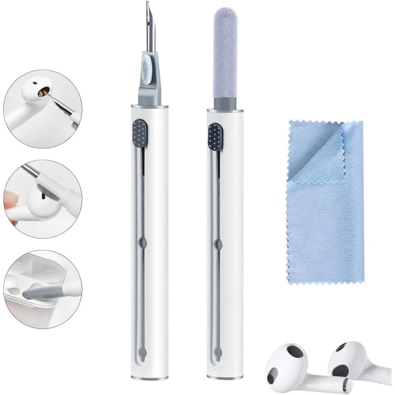 - The Bluetooth earplug cleaning pen adopts push-pull double headed hidden design, equipped with flocking sponge, high-density brush and metal pen tip. The operation is very simple. It can be used with a gentle push.