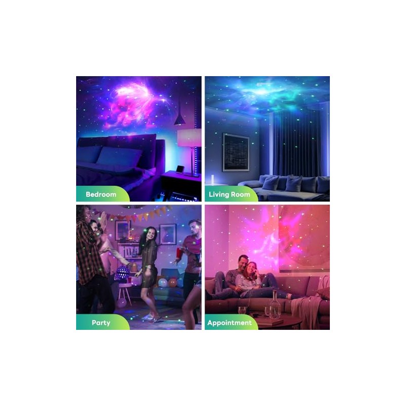 - Manual Switch and Remote Control:Use the buttons or remote control on the back to adjust nebula patterns, brightness and rotation speed, star and nebula patterns can be used simultaneously or separately and adjust the projection effect according to your wishes.Note: There is no always-on mode for stars, only breathing mode (Lights up for 15 seconds and turns off. Lights up again after 3 seconds)