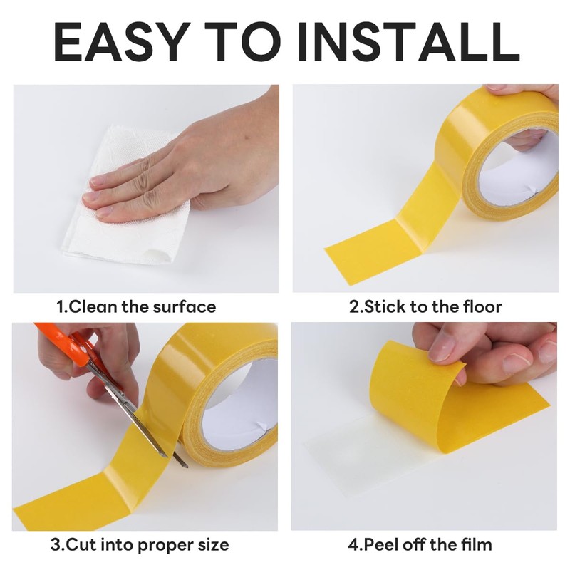 - 2.Premium Quality & Stronger Adhesion - Made of high-quality double-sided adhesive tape with a thickness of 0.07" (350u), our rug grippers are not just strong; they are heavy-duty and tough, able to adhere to various items. They leave no traces or damage on the floor after removal. Notice: These are not reusable.