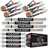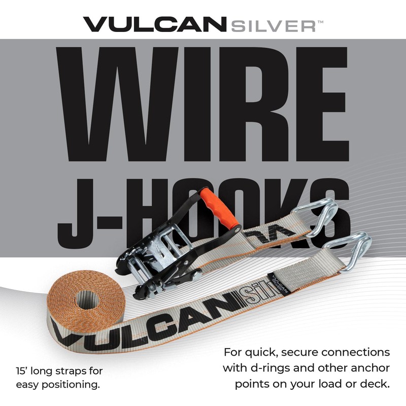 - Unique silver series webbing - Flexible 1-ply 2 inch wide Vulcan Silver Series tie down webbing is thick and strong for excellent durability and long service life. Each strap includes a full body cordura wear pad for even more abrasion resistance, which provides longer strap life and protects the vehicle from inadvertent scratches. Industrial grade ratchet buckles and end fittings are fully plated to resist the elements and provide dependable service in the field.