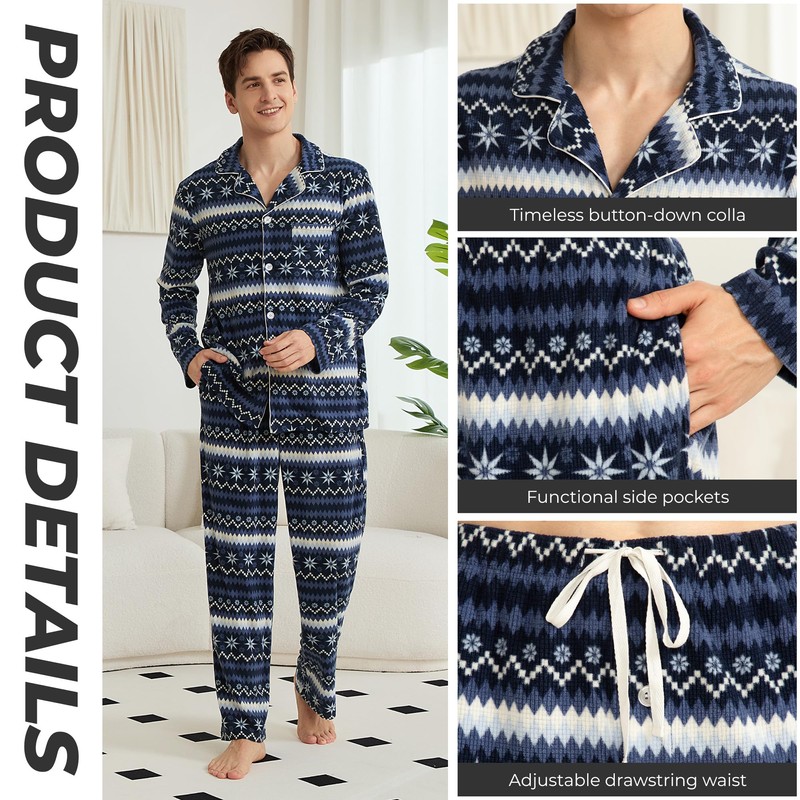 - Ideal Present:Spoil your dad, spouse, son or friend with this ultra comfortable print pajama sets for men, a perfect present for family reunion, thanksgiving, anniversaries, birthday, Christmas, New year and more