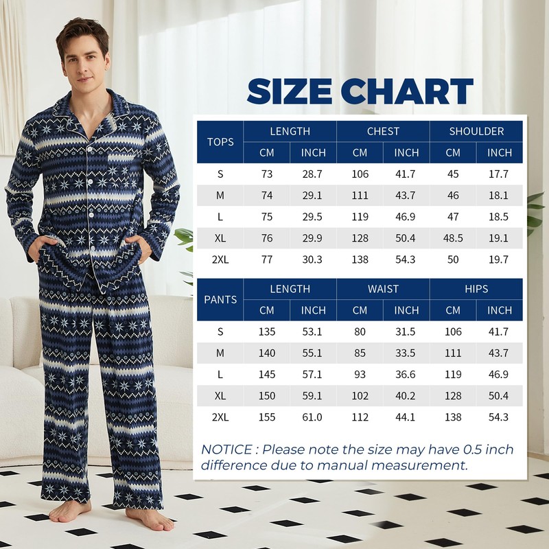 - Multiple print options available:Our mens fleece pajama set come in a variety of patterns, including classic plaid and print styles, adding a touch of fun to your home wear