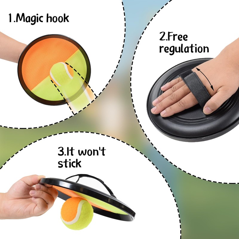 1. Velcro ball game is equipped with strong Velcro hooks, thanks to which you do not have to catch the ball perfectly to grip it. All you need to do is gently touch the flying ball with the glove to keep it in place.
