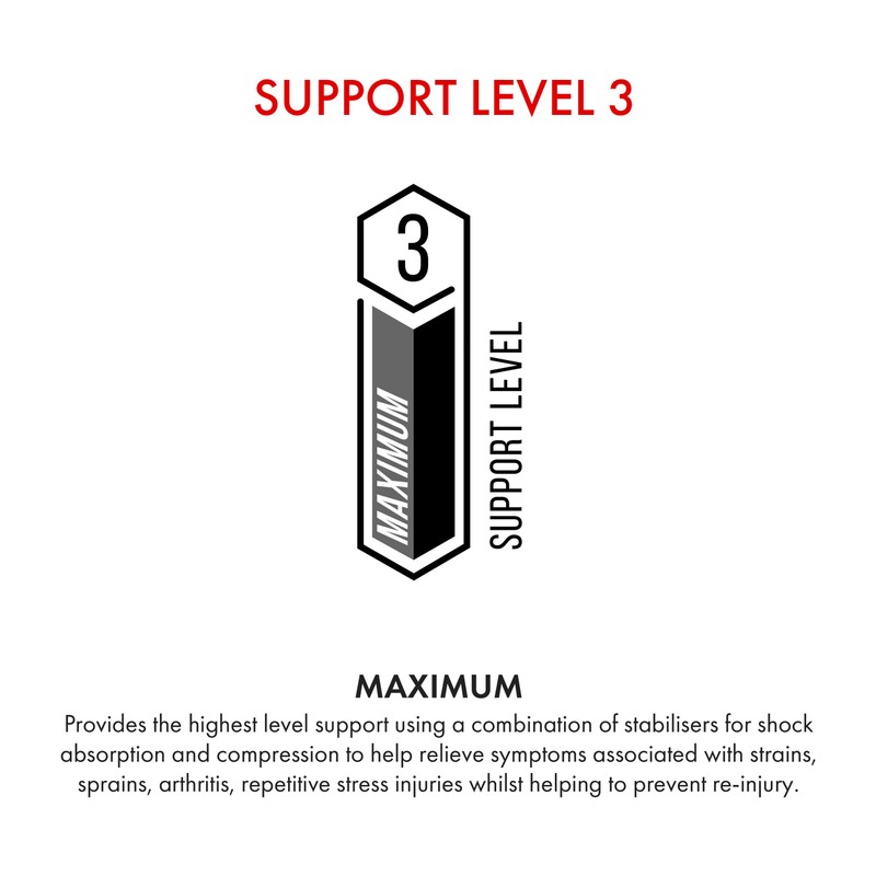 - Stabilising neoprene knee support with spiral struts and an adjustable compression strap help better stability