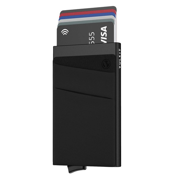 VULKIT Card Holder with Money Pocket Pop Up Wallet RFID Blocking Slim Metal Bank Card Case Holds 5 Cards and Notes, Black
