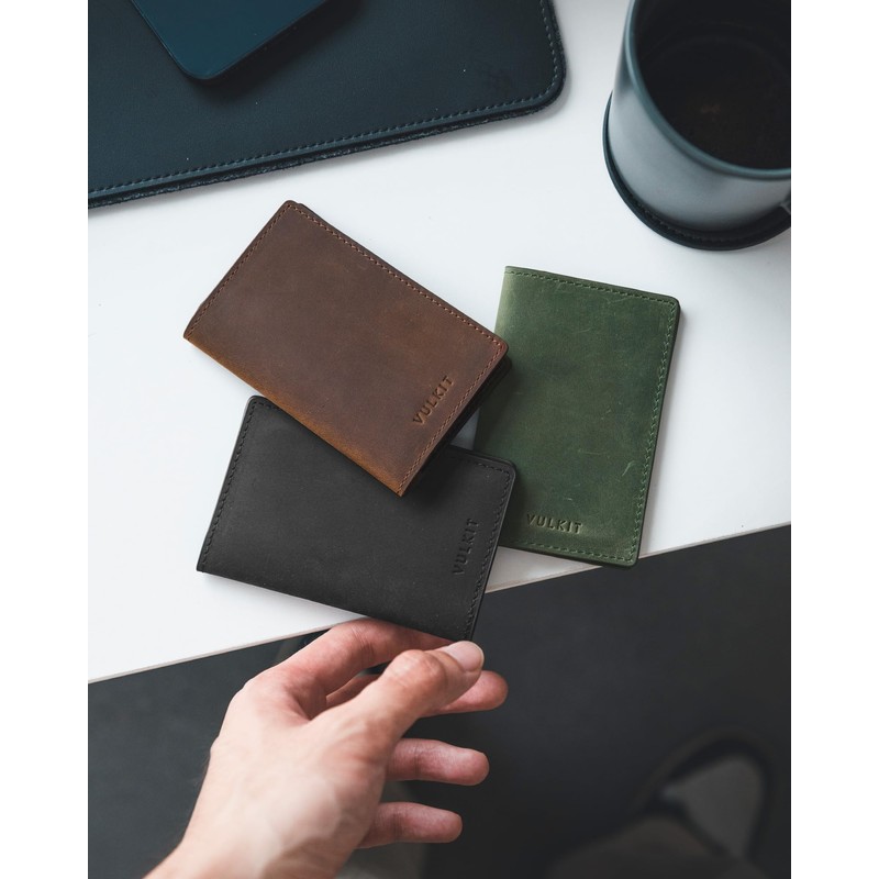 VULKIT Leather Business Card Holder 2 Sided Slim Business Name Card Organizer for Men or Women, Genuine Black, Compact