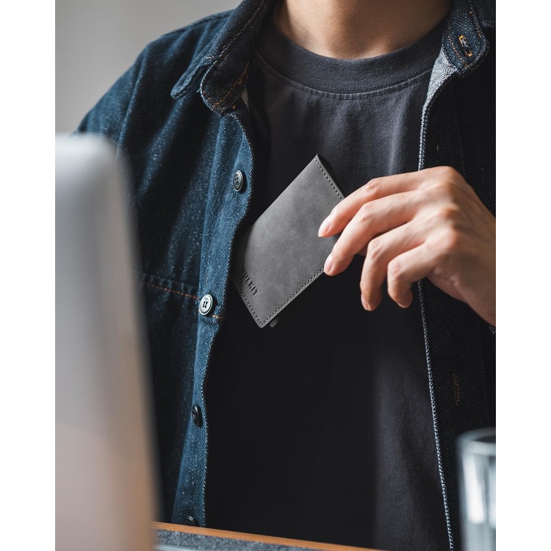 VULKIT Leather Business Card Holder 2 Sided Slim Business Name Card Organizer for Men or Women (Yangba Grey)