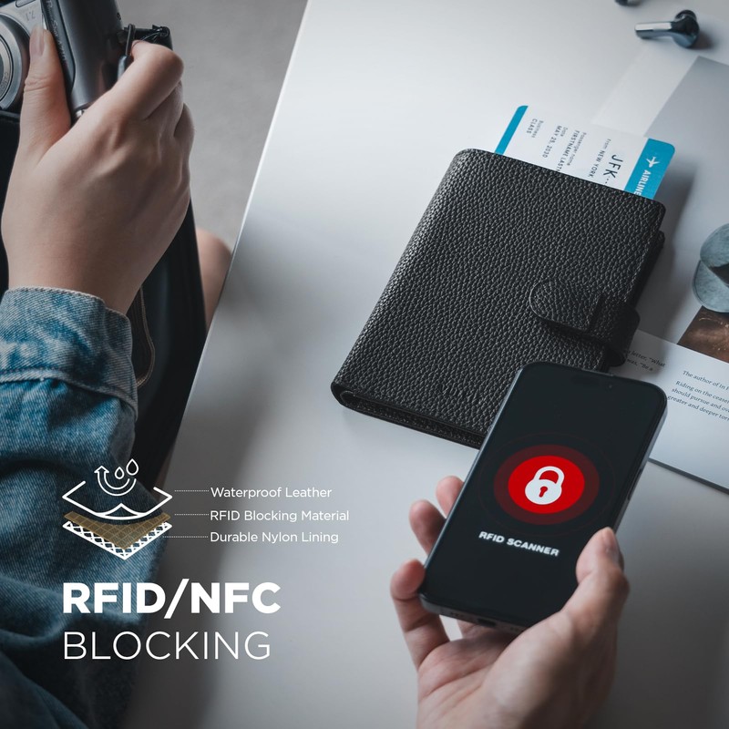 • RFID/NFC Blocking Passport Wallet- Passport holder for women features advanced RFID/NFC blocking technology, protecting your valuable credit card information and travel documents from electronic theft.