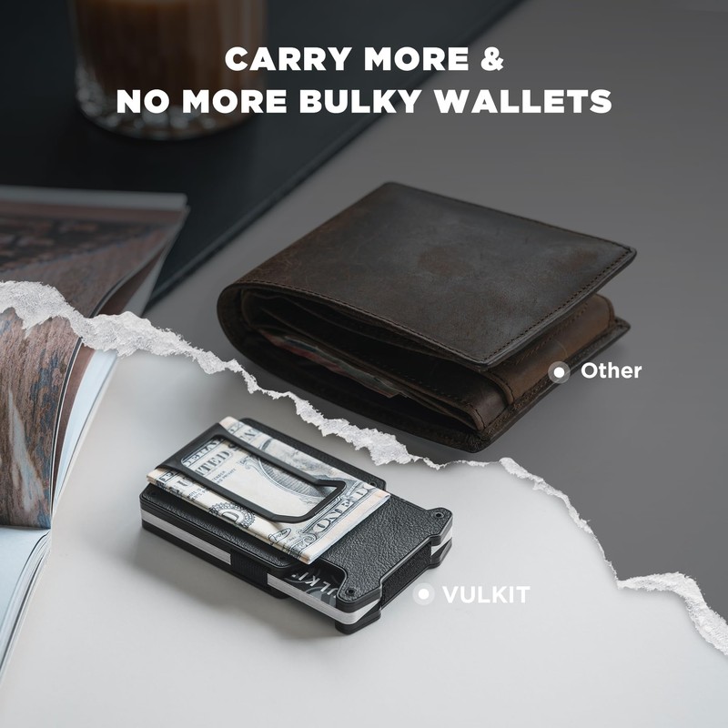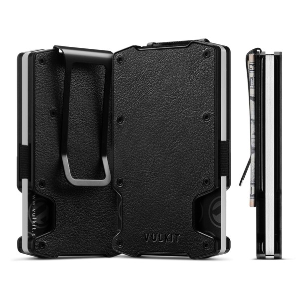 VULKIT Wallet for Men Slim Wallet with Money Clip, RFID Blocking Metal Wallet, Card Holder Mens for 15+ Cards