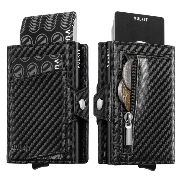 VULKIT Wallet for Men with Pop Up Card Holder 10-12 Cards, Trifold RFID Blocking Credit Card Wallet with ID Window, Cash Slot, Zip Coin Pocket, Minimalist Smart Compact Metal Aluminum Card Case