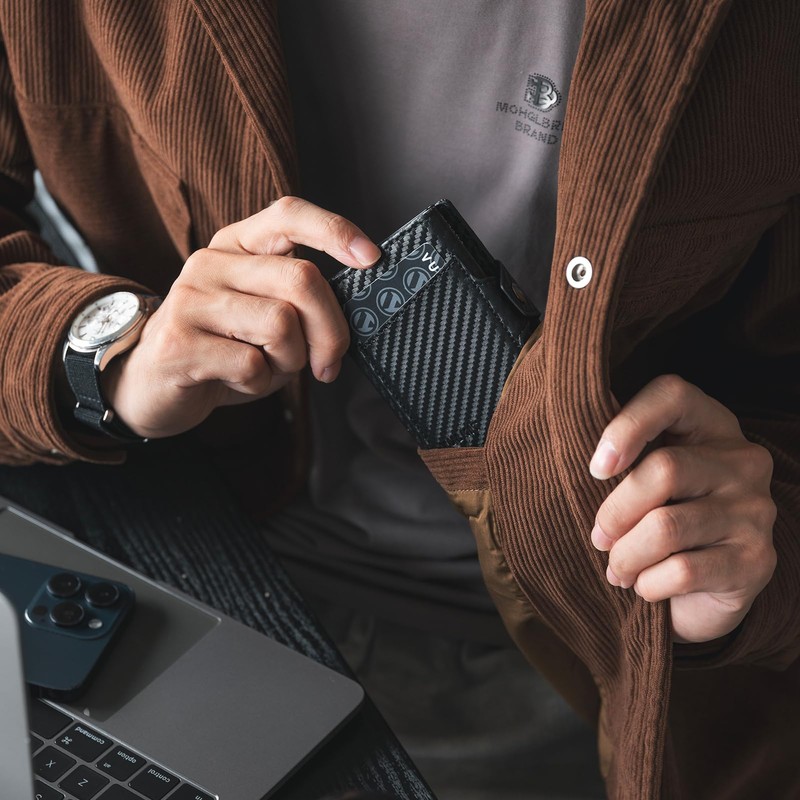 • One-Touch Card Access: The integrated aluminum card holder allows for one-click pop-up access, letting you retrieve your most-used cards quickly and smoothly