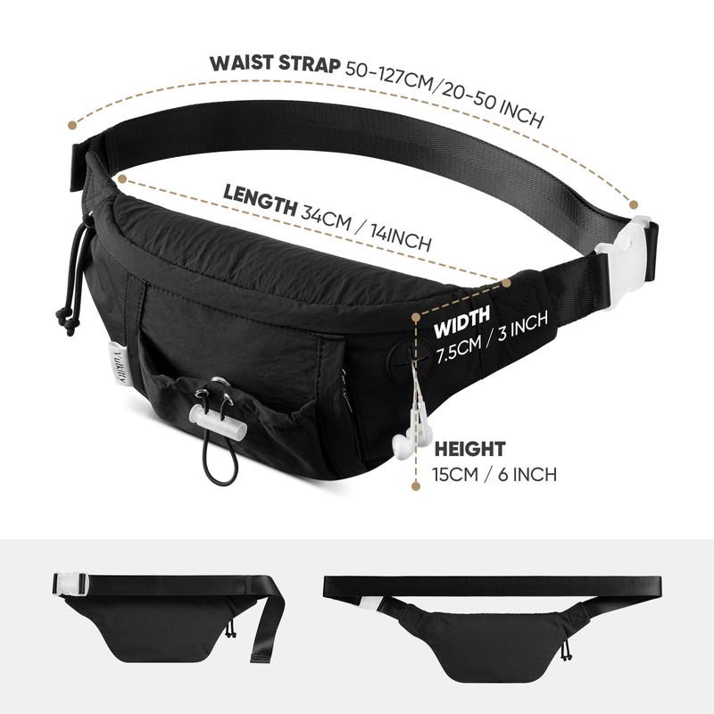 - Adjustable Belt: The Fanny pack features an adjustable belt with a push-hook buckle for a customized fit.