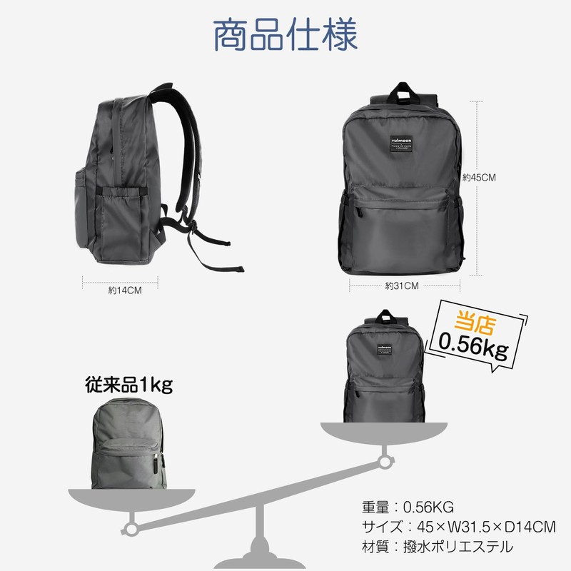 - (Superior Waterproof and Durable Material) Size: 17.7 x 12.4 x 5.5 inches (45 x 31.5 x 14 cm); Large capacity holds all your necessities securely, but weighs only 1.2 lbs (0.56 kg). Made of high density soft polyester fabric with excellent waterproofing, abrasion resistance, and breathability, so you can rest assured even when you go to work on rainy days. The backpack strap is made of elastic and non-stuffy cushioned mesh material that allows you to comfortably carry it for a long time while commuting to work or school or travel