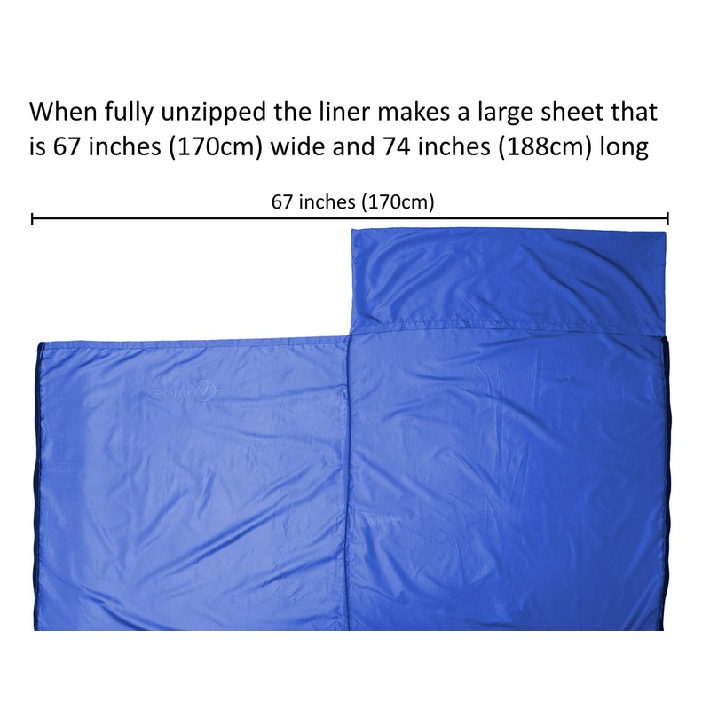 - PERFECT SIZE – The liner measures 85 inches (216cm) long and 33.5 inches (85cm) wide. It has ample room for tall people without having excess material that makes you uncomfortable. Also has a pillow pocket at the top that is 33.5 inches (85cm) wide and 13 inches (33cm) high.