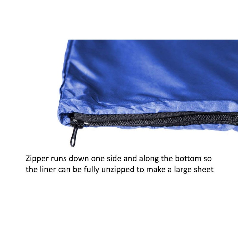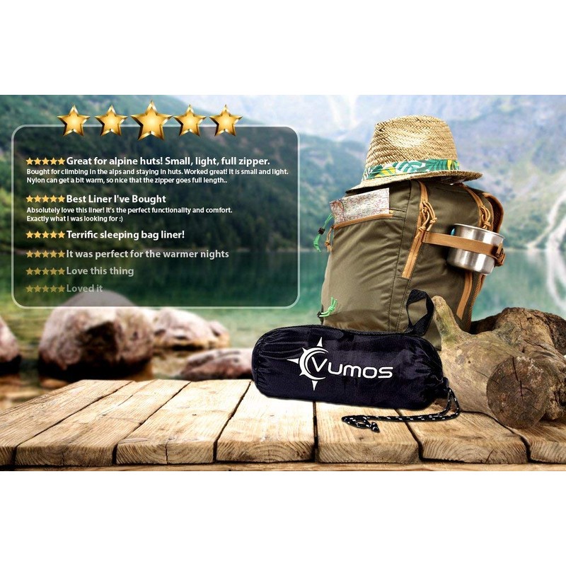 - FULL LENGTH ZIPPER – The Vumos Sleeping Bag Liner comes with a full zipper that runs fully down one side and across the bottom of the liner. This means it can be fully unzipped to make a large sheet.