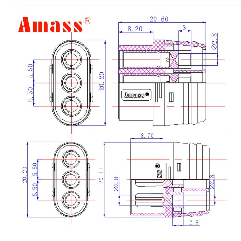 - MR60 Amass high current motor plug, gold plug and socket pairs with protective caps, original item - firmly fitting, for a secure connection and contact surface