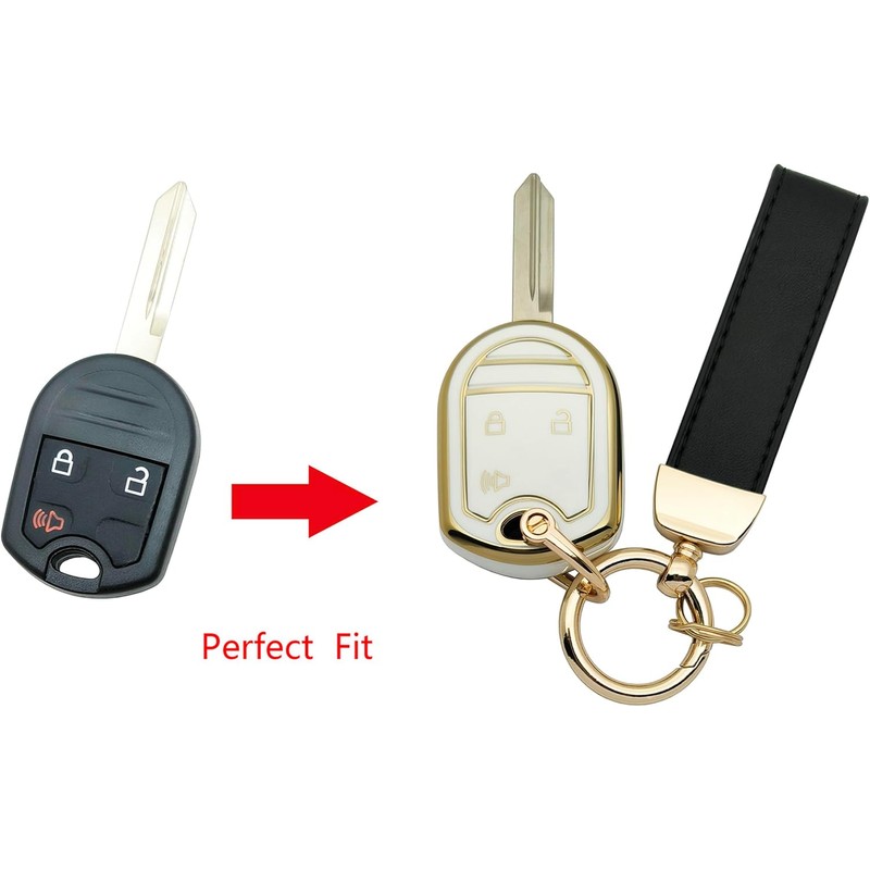 vurbemes TPU Protector Key Fob Cover Case fit for Ford F-150/F150 F-250 F-350 Super Duty F-450 F-550 F-650 Explorer Expedition Keyless Entry Key Fob (White, 3B)