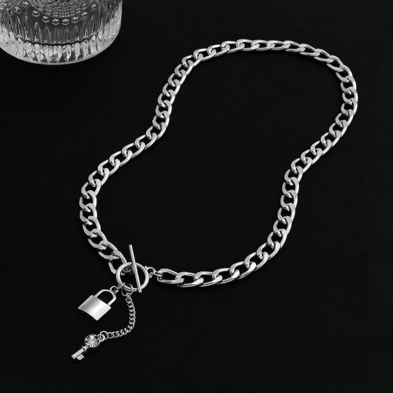 - Fashion design: The lock and key pendant necklace adopts a thick chain design and is paired with an OT shaped clasp, which is fashionable and trendy. The padlock key necklace symbolizes love and trust for women and is a choice of jewelry for couples. It is the ideal jewelry for anniversaries or special occasions, which can instantly enhance your style