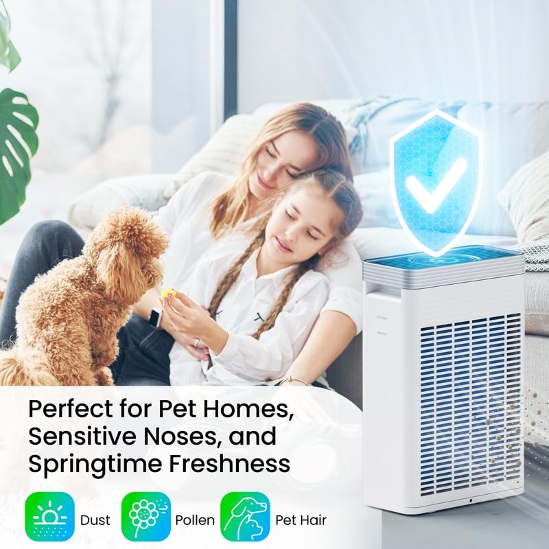 - HIGH-EFFICIENCY H13 FILTERING-Advanced multi-stage filtration with H13 True HEPA captures 99.97% of ultra-fine airborne particles like dust, pet hair, and household smoke, helping maintain a fresher indoor environment