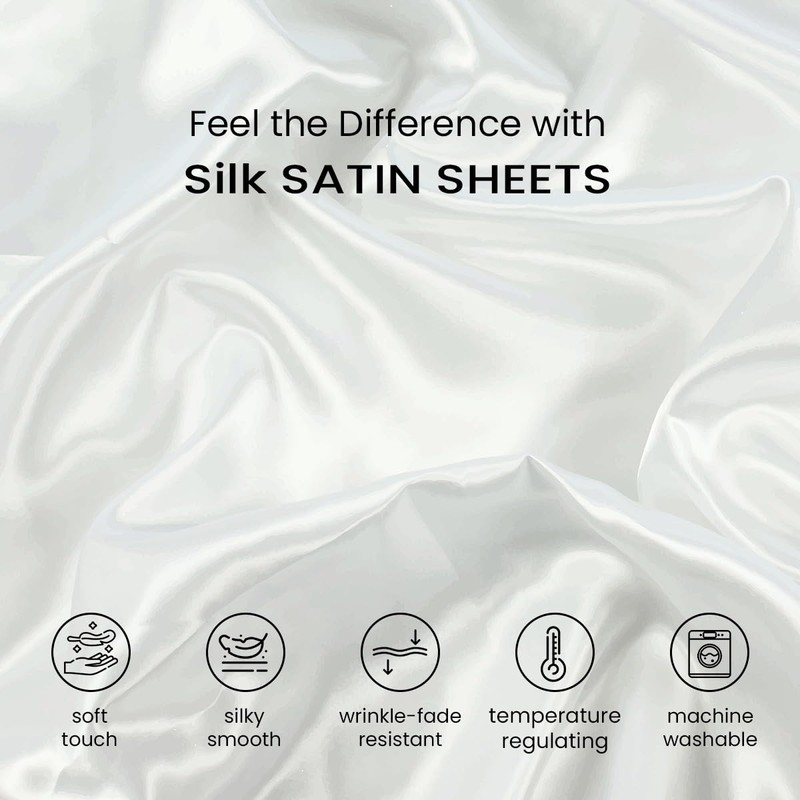 - Ultimate Sleeping Experience - Breathable and soft sleeping on Satin allows for skin to move freely, gliding across the surface and reducing visible marks upon waking. Our Slik Satin flat sheet adjusts to the individual's body temperature to keep you cool in summer and warm in winter.Unlike cotton, silk does not absorb moisture from the skin and hair, keeping your hair smooth and skin soft to prevent facial lines. The lustrous look of our silk satin sheets can elevate the style of your bedroom.