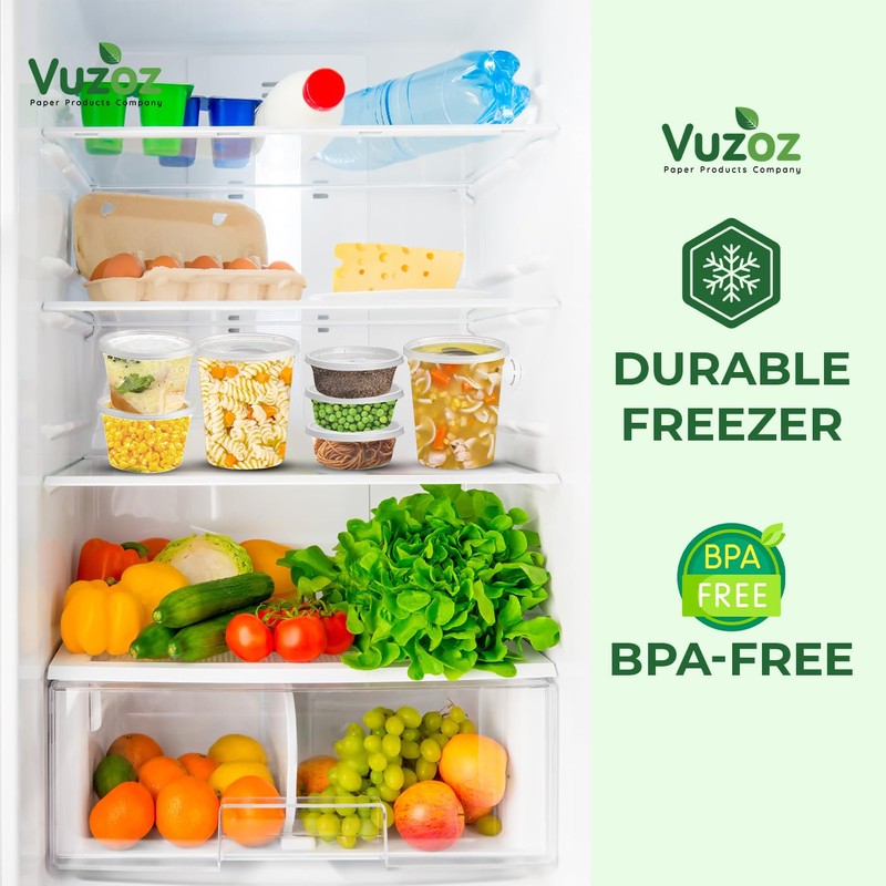 VUZOZ Soup Containers with Lids, 48-Pack – 16 Each 8 oz, 16 oz & 32 oz Sizes – Durable, Freezer Safe, Leakproof, Disposable Plastic Deli Containers with Lids for Meal Prep, Storage & Takeout!