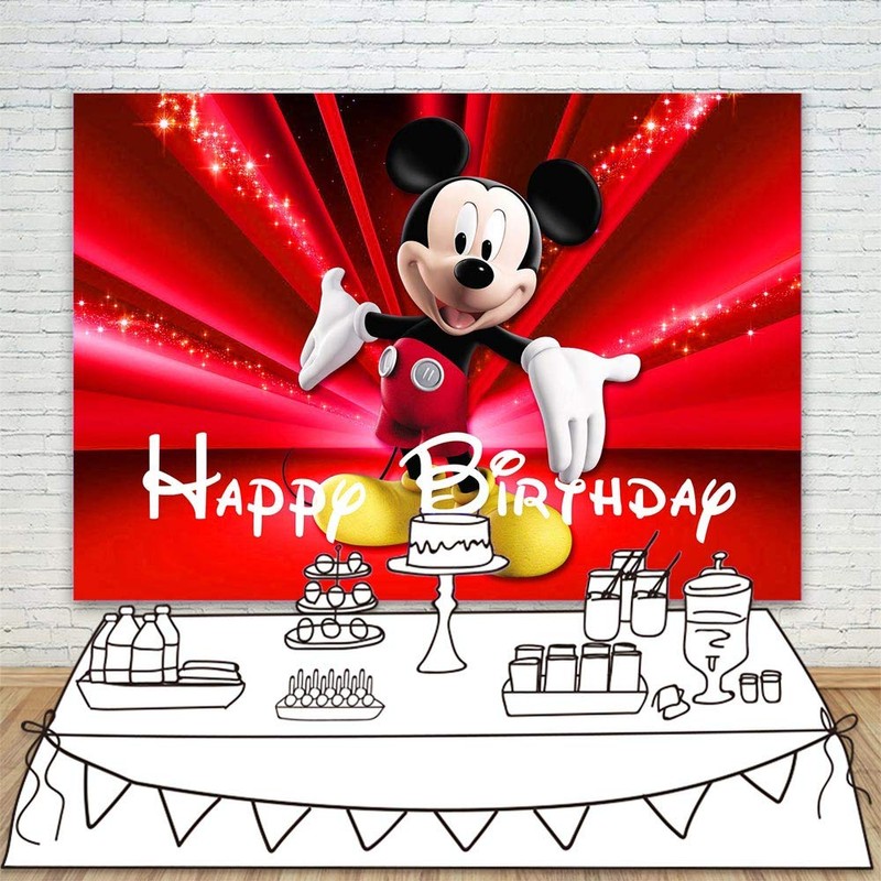 VV Backdrop Happy Birthday Mickey Mouse Theme 7x5 Vintage Black and Red Mickey Mouse Background for Kids First Birthday Vinyl Sparkly Red Backgrounds Mickey Mouse for Party