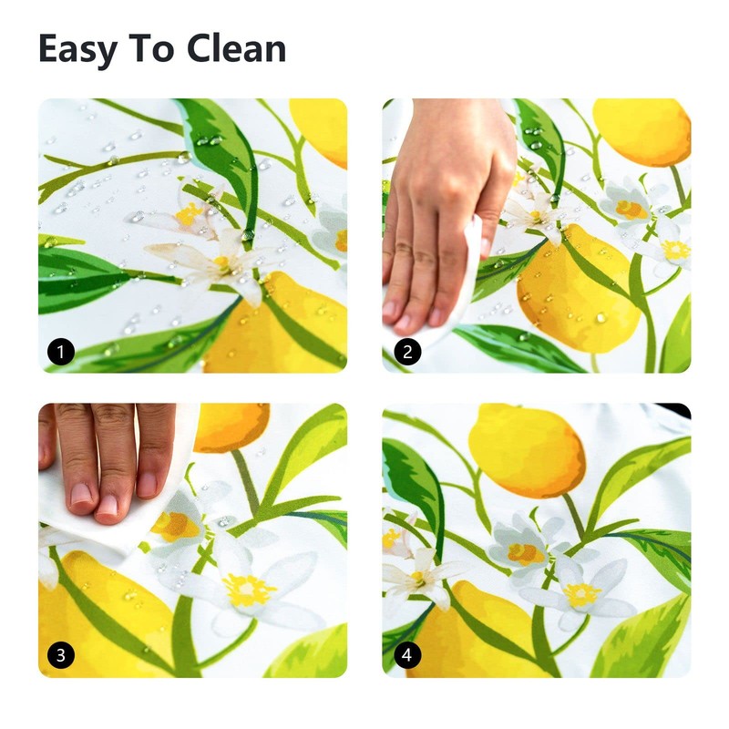 - 🍋SPILL PROOF & STAIN RESISTANT : Our round table cloth is oil-proof, stain proof, scratch and water resistant,making it the perfect cover protector for your table. Machine washable in cold water. Reusable, easy to clean and maintain. Air dry or tumble dry on low. Warm ironing if needed.