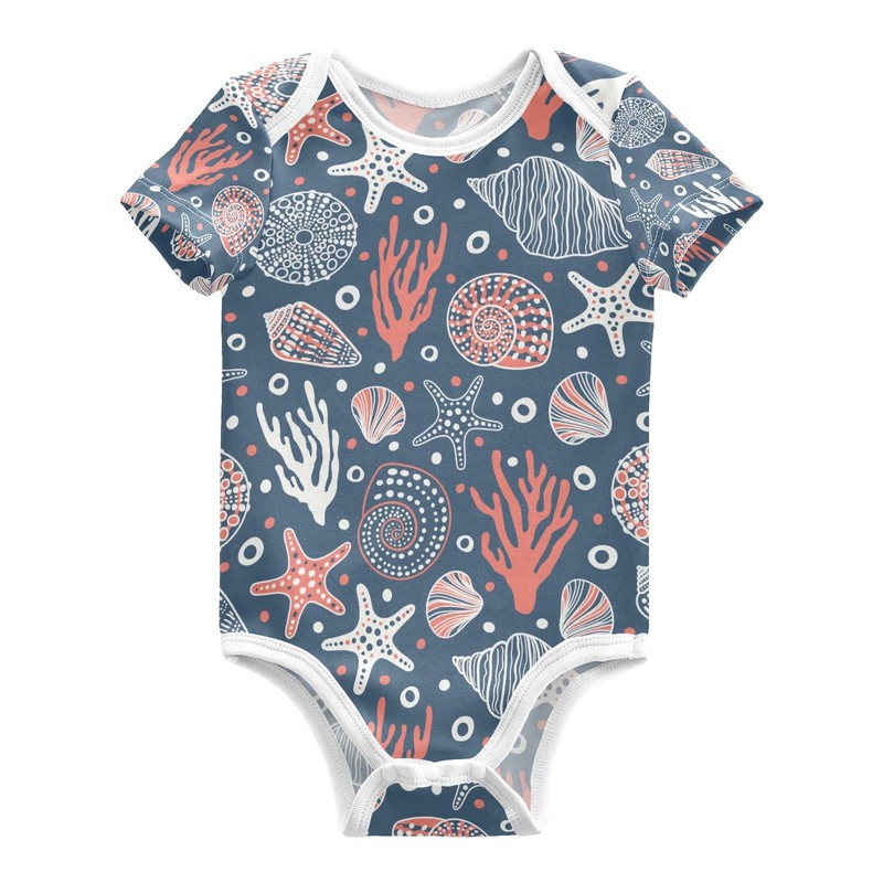 - 🌈Soft Material:Sea Urchin Starfish Shell Coral Newborn Infant Bodysuit is made of high-quality cotton fabric,baby Bodysuit is soft comfortable and breathable,it is suitable for babies summer wear.