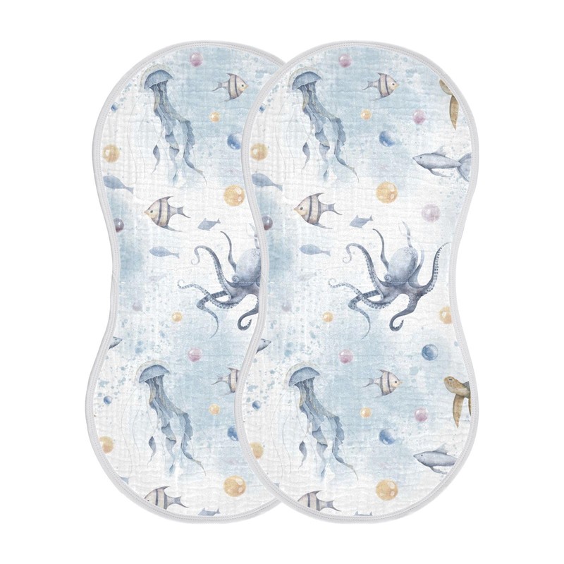 vvfelixl Muslin Burp Cloths Sea Turtle and Octopus Baby Washcloths for Baby Girl Boys 2 Pack