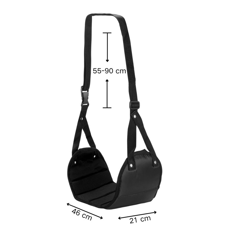 - Adjustable straps for individual comfort - The adjustable strap allows you to adjust the footrest to different heights so that your feet are comfortably supported regardless of your stature. Especially recommended if your feet do not reach the floor when you sit. Setting up the footrest is a breeze - simply hang the straps on your arms over the tablet table in front of your seat and place your feet in the footrest.