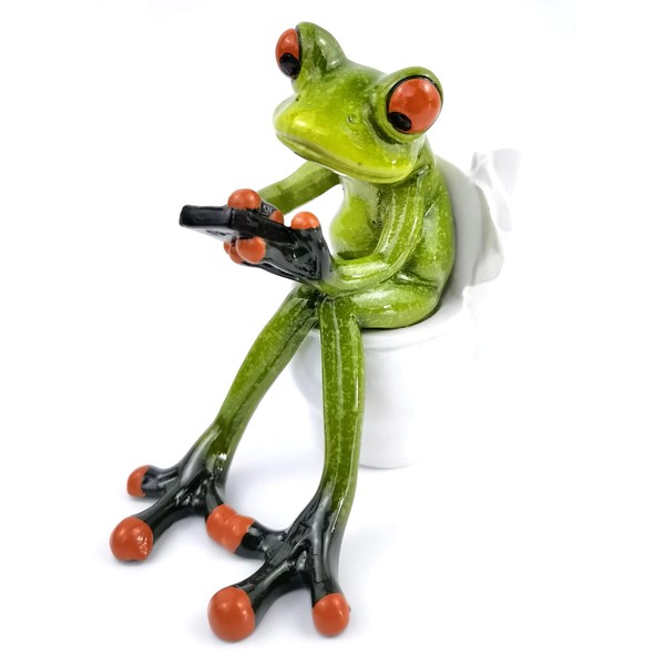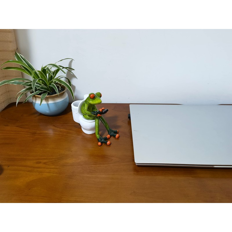 VVGIFTS - Figuritas de rana para decoración divertida y bonita estatua de escultura de rana de resina, para hogar, oficina, computadora, decoración de baño, regalo de adorno (rana sentada en el
