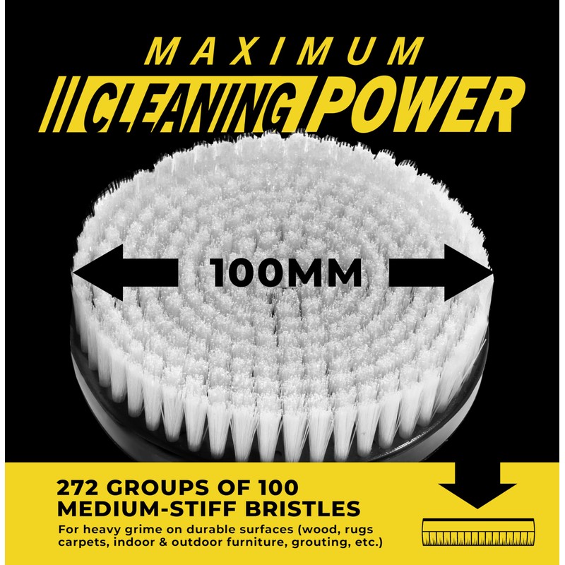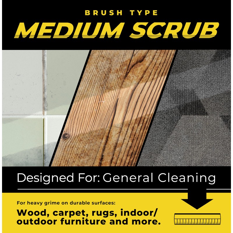 • Medium stiff Bristle brush attachment: Cleans heavy grime on durable surfaces including wood, and general cleaning such as carpets and rugs, outdoor / indoor furniture, car convertible tops, etc.