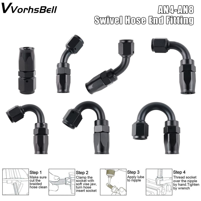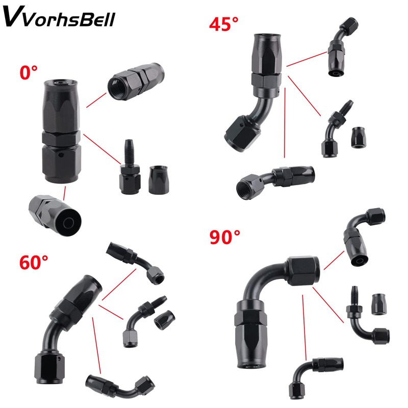 VVORHSBELL 4AN Hose End Fitting 90 Degree Swivel Aluminum Black Oil Fuel Gas Hose End Fitting