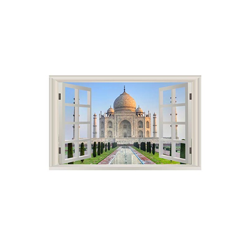 VWAQ - Taj Mahal Wall Art Decal 3D Window View Sticker Peel and Stick Scenic Mural - NWT16 (36" H X 54" W)