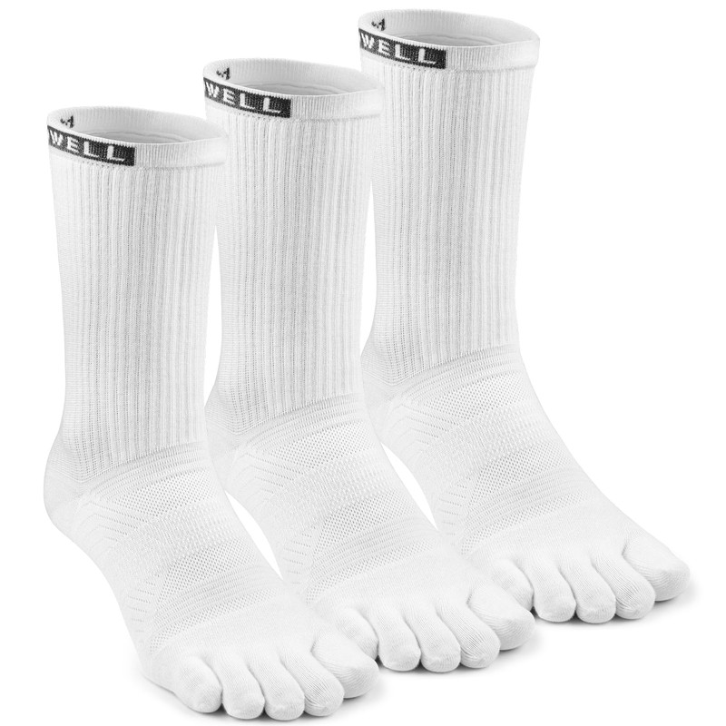 VWELL Toe Socks for Men Women Running COOLMAX Mid-Calf Finger Socks Athletic Breathable Five Toe Design Quick Dry, 3Pairs, White, Medium