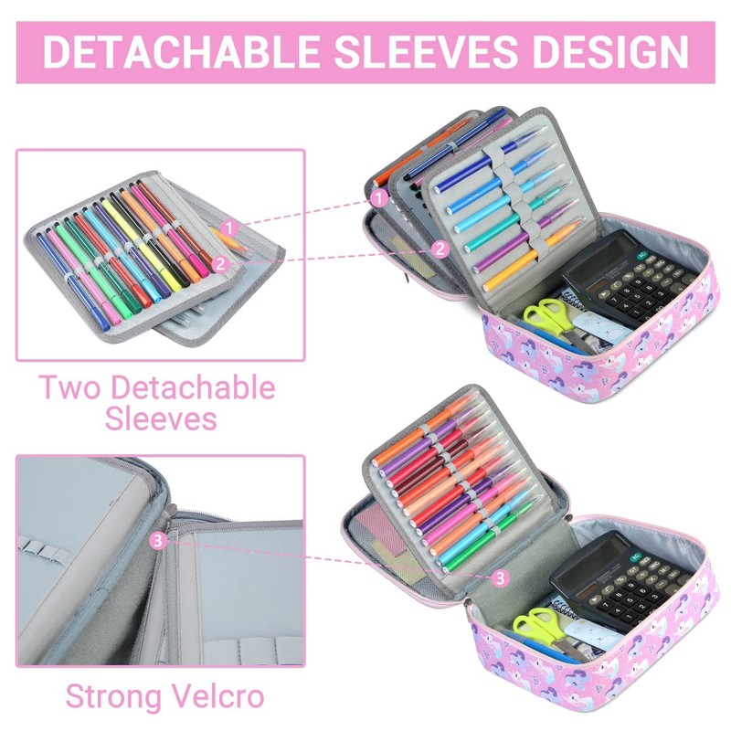 VX VONXURY Large Pencil Case, Multi Compartments Pencil Case 54 Pieces Stationery Organiser with 2 Removable Layers, Pencil Case for Boys Girls School Office, Unicorn, shoulder bag