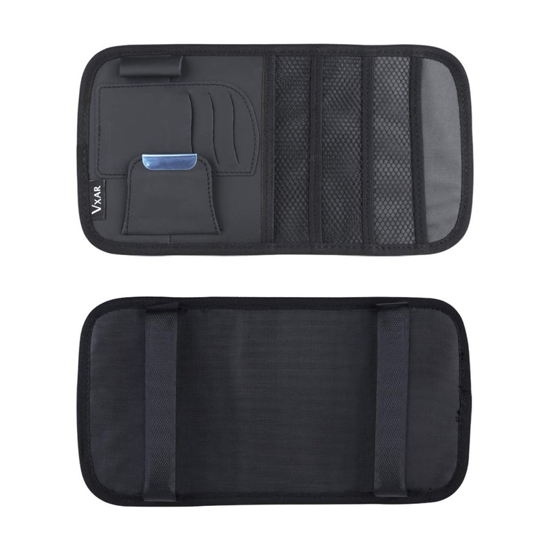 VXAR Car Sun Visor Organizer Pocket Storage Pouch Case Leather Holder Portable (Black 3 Mesh)